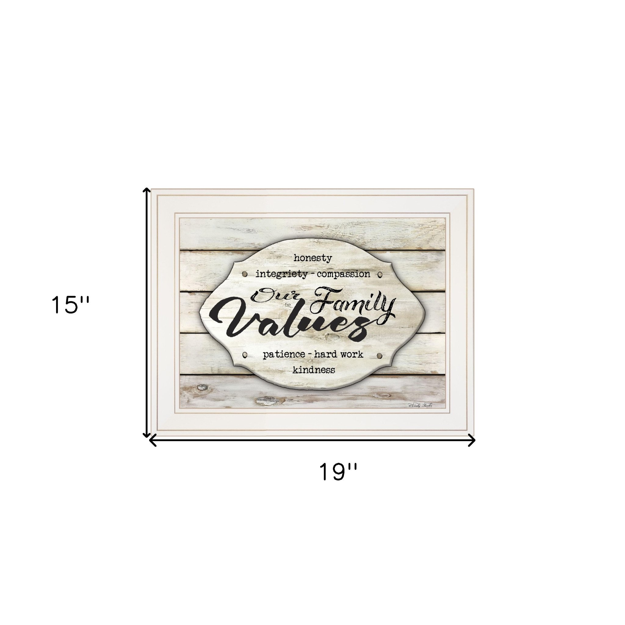 This our family values 2 white framed print wall art will add a beautiful decorative accent to your decor. This print is a visual artistic expression that allows you to decorate your space in style. Reproduced for you on paper, this hanging decorative accent will be a trendy and fashionable way to dress your walls. Adding this hanging wall art to your space to make your room feel more finished and attractive. Instantly liven up your space with this art that brings color and dimension to your walls. 15-inch H x 19-inch W x 1-inch D