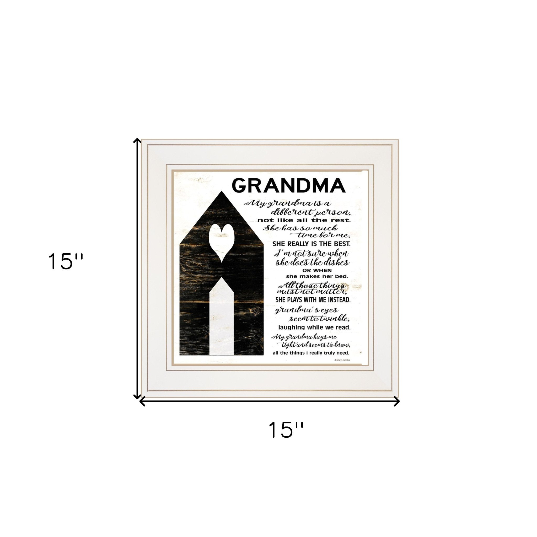 The my grandma white framed print wall art is the perfect decorative accessory for your home. This print is a visual artistic expression that allows you to decorate your space in style. Reproduced for you on paper, this hanging decorative accent will be a trendy and fashionable way to dress your walls. Adding this hanging wall art to your space to make your room feel more finished and attractive. Instantly liven up your space with this art that brings color and dimension to your walls. 15 inches H x 15 inches W x 1 inches D