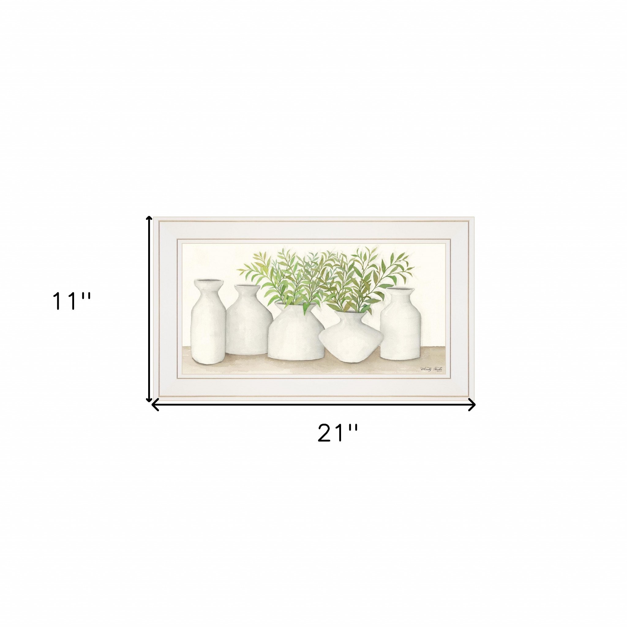 Unique and decorative, this simplicity in white ii white framed print wall art will leave a lasting impression. This print is a visual artistic expression that allows you to decorate your space in style. Reproduced for you on paper, this hanging decorative accent will be a trendy and fashionable way to dress your walls. Adding this hanging wall art to your space to make your room feel more finished and attractive. Utilize this opportunity to create a focal point in the room with this fabulous wall decor option. 11-inch H x 21-inch W x 1-inch D
