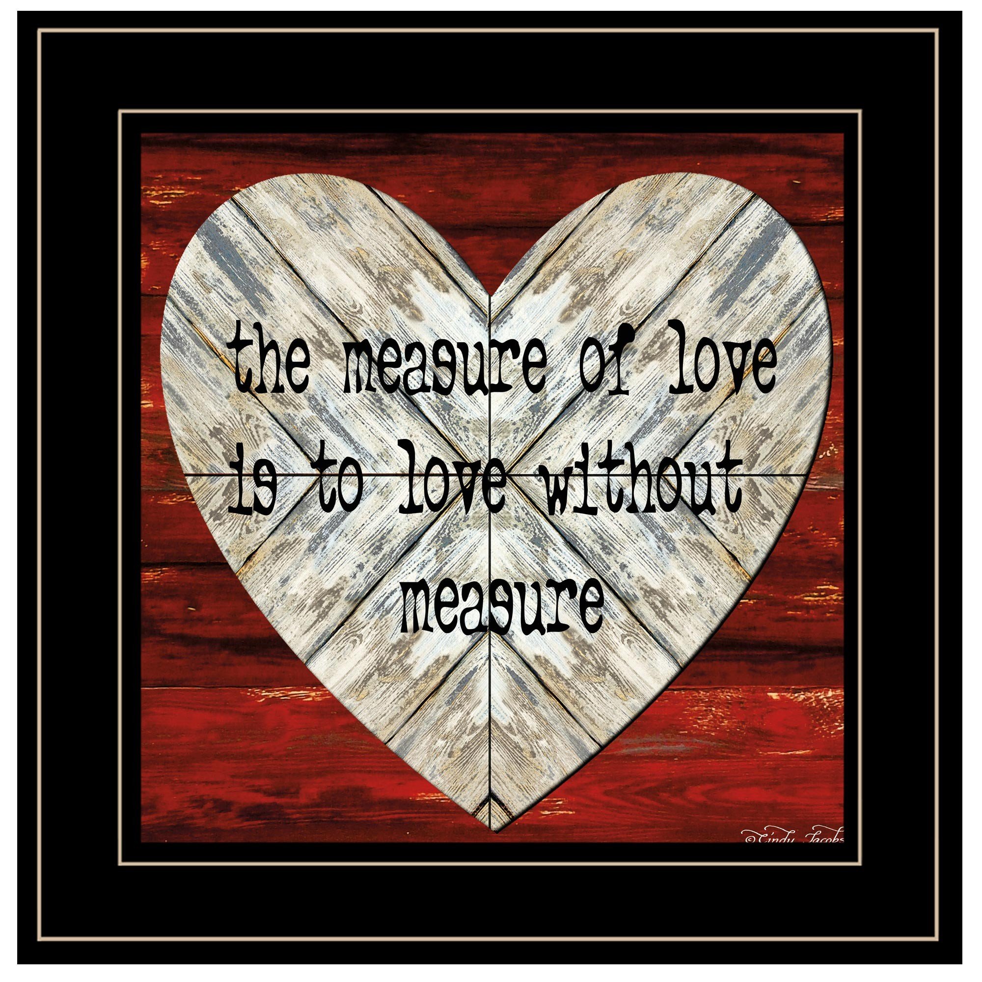Unique and decorative, this measure of love 2 black framed print wall art will leave a lasting impression. This print is a visual artistic expression that allows you to decorate your space in style. Reproduced for you on paper, this hanging decorative accent will be a trendy and fashionable way to dress your walls. Adding this hanging wall art to your space to make your room feel more finished and attractive. Utilize this opportunity to create a focal point in the room with this fabulous wall decor option. 15-inch H x 15-inch W x 1-inch D