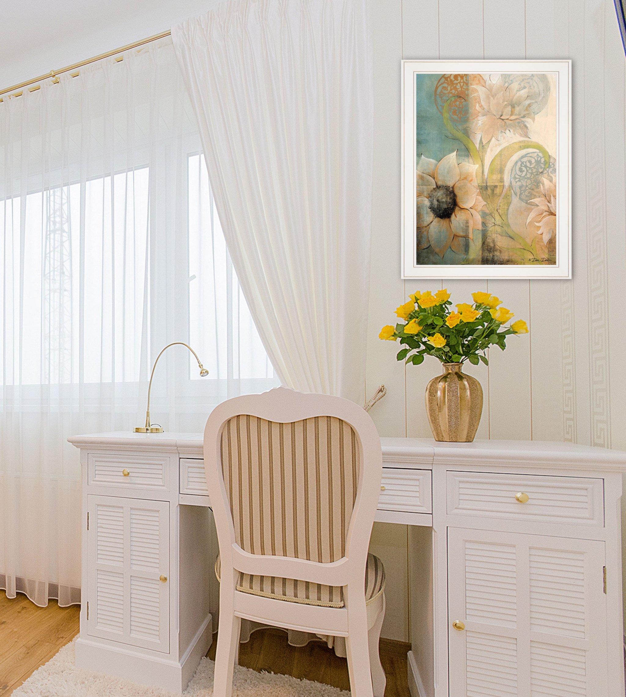 This meandering flowers i 1 white framed print wall art will add a beautiful decorative accent to your decor. This print is a visual artistic expression that allows you to decorate your space in style. Reproduced for you on paper, this hanging decorative accent will be a trendy and fashionable way to dress your walls. Hang on your wall to add some up to date fashion and decoration. Instantly liven up your space with this art that brings color and dimension to your walls. 27-inch H x 21-inch W x 1-inch D