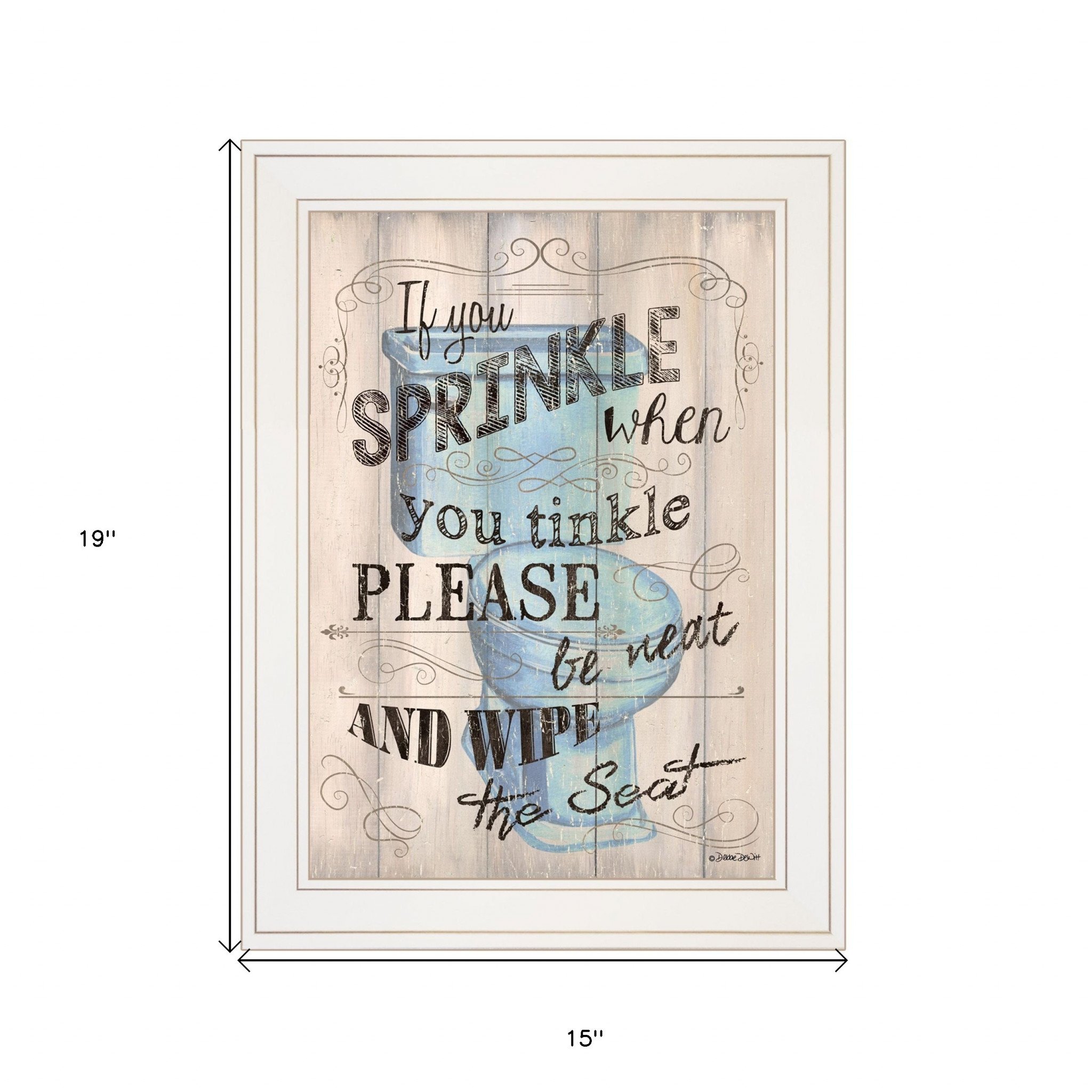 Add an air of fashion to your room and rejuvenate the space with this bathroom humor 5 white framed print bathroom wall art. This print is a visual artistic expression that allows you to decorate your space in style. Reproduced for you on paper, this hanging decorative accent will be a trendy and fashionable way to dress your walls. Adding this hanging wall art to your space to make your room feel more finished and attractive. Instantly liven up your space with this art that brings color and dimension to your walls. 19-inch H x 15-inch W x 1-inch D