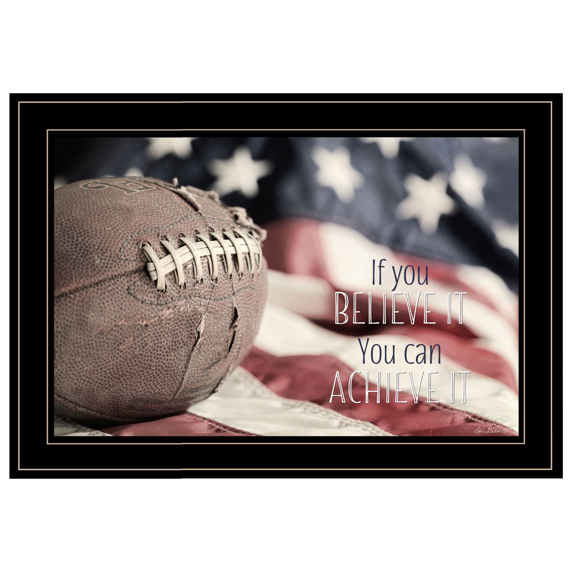 Add an air of fashion to your room and rejuvenate the space with this football believe it 2 black framed print wall art. This print is a visual artistic expression that allows you to decorate your space in style. Reproduced for you on paper, this hanging decorative accent will be a trendy and fashionable way to dress your walls. Adding this hanging wall art to your space to make your room feel more finished and attractive. Instantly liven up your space with this art that brings color and dimension to your walls. 15-inch H x 21-inch W x 1-inch D