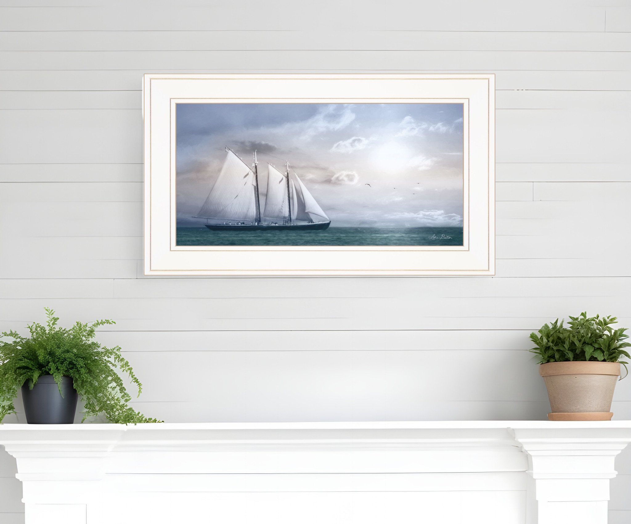Unique and decorative, this adventure on the seas 1 white framed print wall art will leave a lasting impression. This transportation inspired wall art features a sailboat icon and will bring a refreshing look and perspective to your walls. This print is a visual artistic expression that allows you to decorate your space in style. Reproduced for you on paper, this hanging decorative accent will be a trendy and fashionable way to dress your walls. Adding this hanging wall art to your space to make your room feel more finished and attractive. Instantly liven up your space with this art that brings color and dimension to your walls. 12-inch H x 21-inch W x 1-inch D