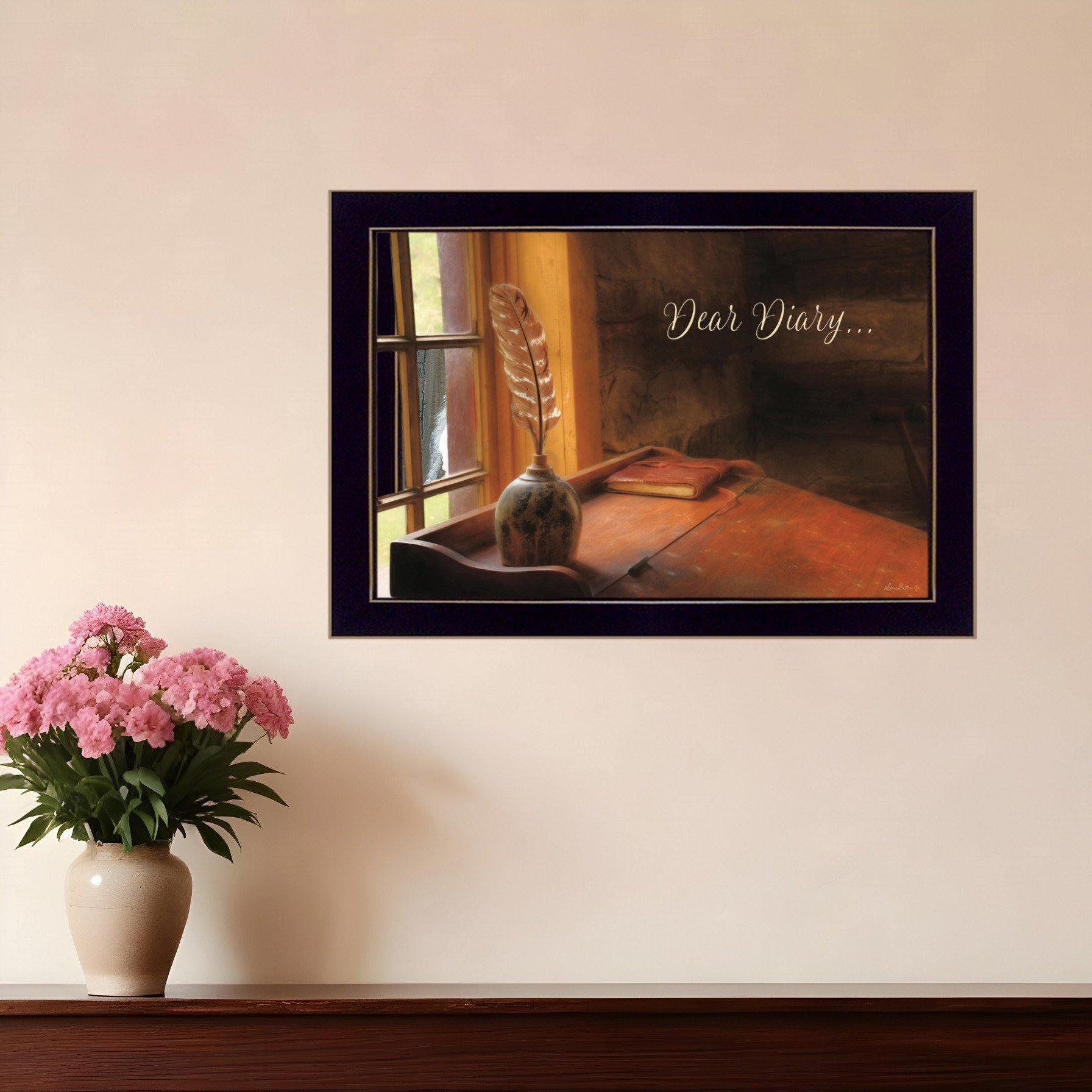 Add an air of fashion to your room and rejuvenate the space with this dear diary black framed print wall art. This print is a visual artistic expression that allows you to decorate your space in style. Reproduced for you on paper, this hanging decorative accent will be a trendy and fashionable way to dress your walls. Adding this hanging wall art to your space to make your room feel more finished and attractive. Instantly liven up your space with this art that brings color and dimension to your walls. 14-inch H x 20-inch W x 1-inch D