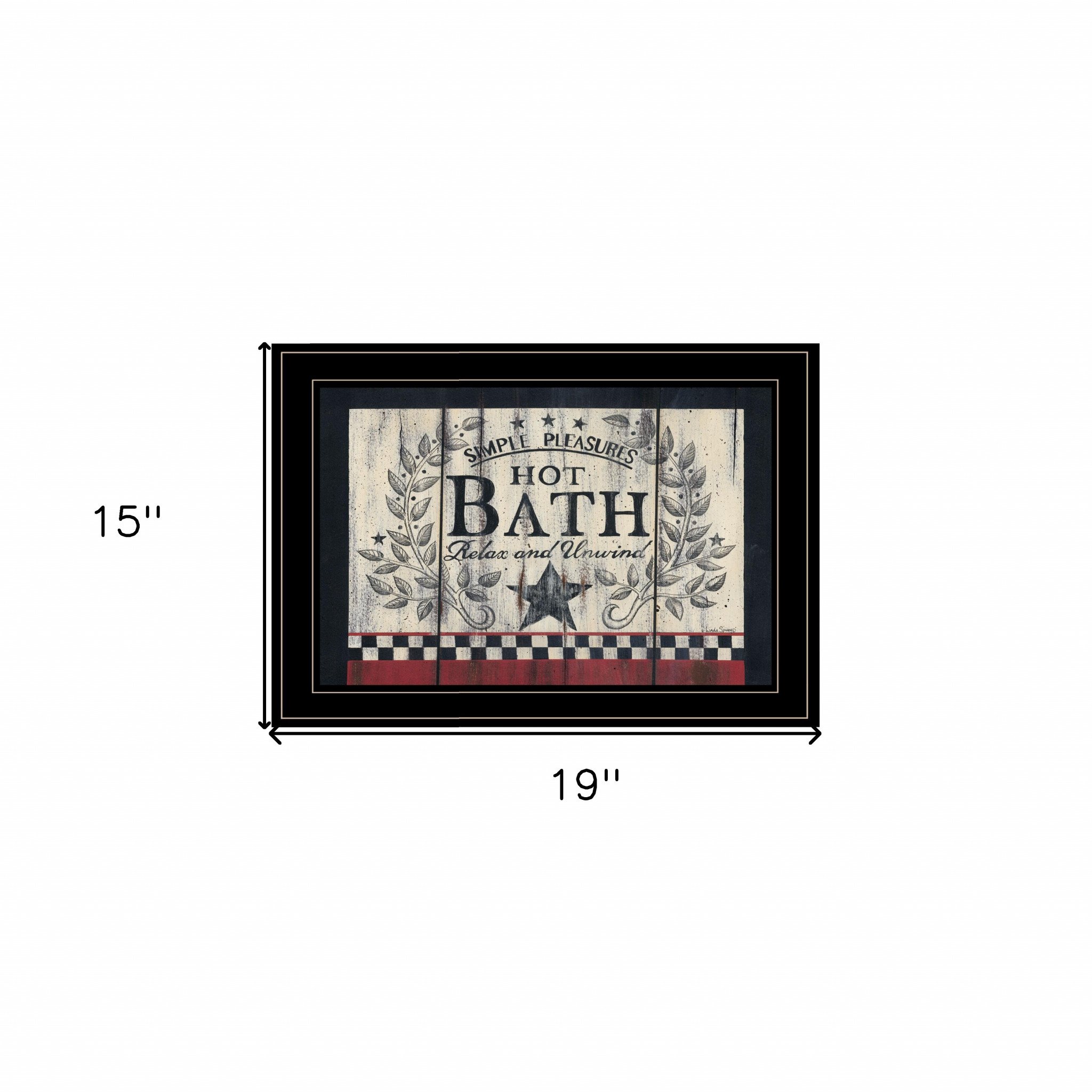 This hot bath 14 black framed print bathroom wall art will add a beautiful decorative accent to your decor. This print is a visual artistic expression that allows you to decorate your space in style. Reproduced for you on paper, this hanging decorative accent will be a trendy and fashionable way to dress your walls. Hang on your wall to add some up to date fashion and decoration. Instantly liven up your space with this art that brings color and dimension to your walls. 15-inch H x 19-inch W x 1-inch D