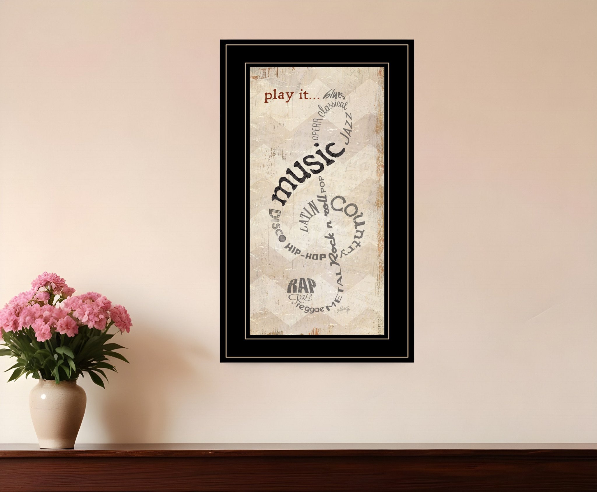 Unique and decorative, this play it 2 black framed print wall art will leave a lasting impression. This print is a visual artistic expression that allows you to decorate your space in style. Reproduced for you on paper, this hanging decorative accent will be a trendy and fashionable way to dress your walls. Hang on your wall to add some up to date fashion and decoration. Utilize this opportunity to create a focal point in the room with this fabulous wall decor option. 21-inch H x 12-inch W x 1-inch D