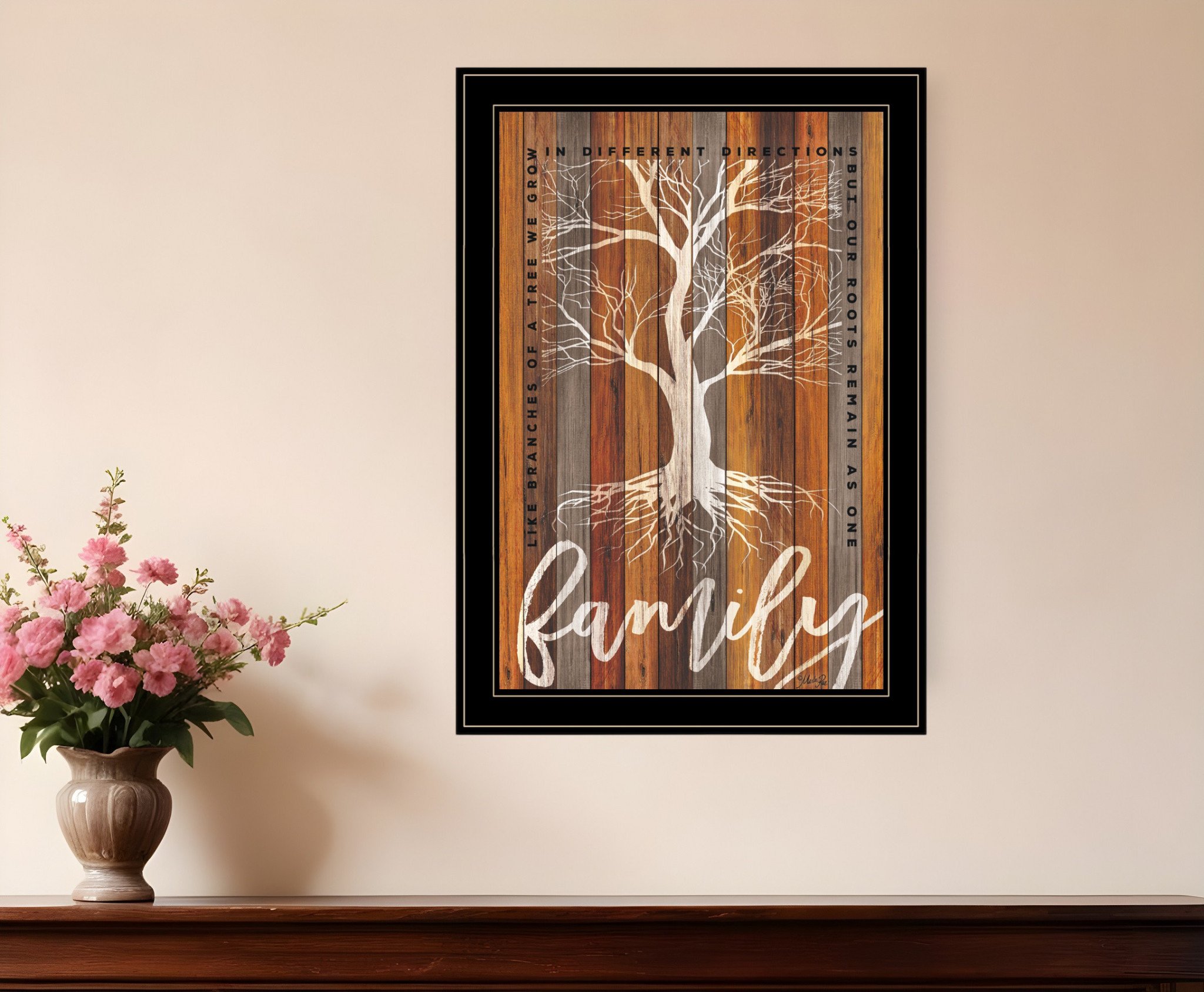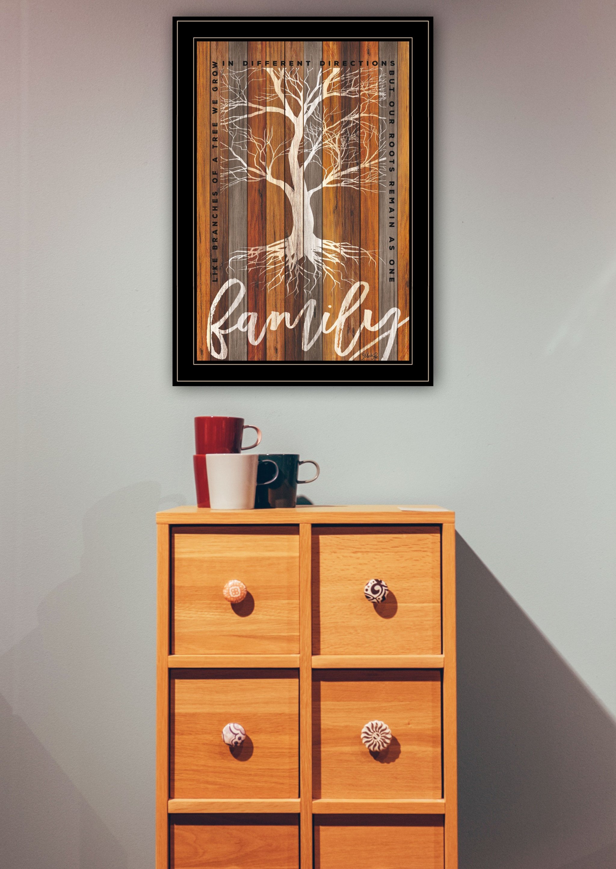 Add an air of fashion to your room and rejuvenate the space with this family roots 2 black framed print wall art. This print is a visual artistic expression that allows you to decorate your space in style. Reproduced for you on paper, this hanging decorative accent will be a trendy and fashionable way to dress your walls. Hang on your wall to add some up to date fashion and decoration. Instantly liven up your space with this art that brings color and dimension to your walls. 21-inch H x 15-inch W x 1-inch D