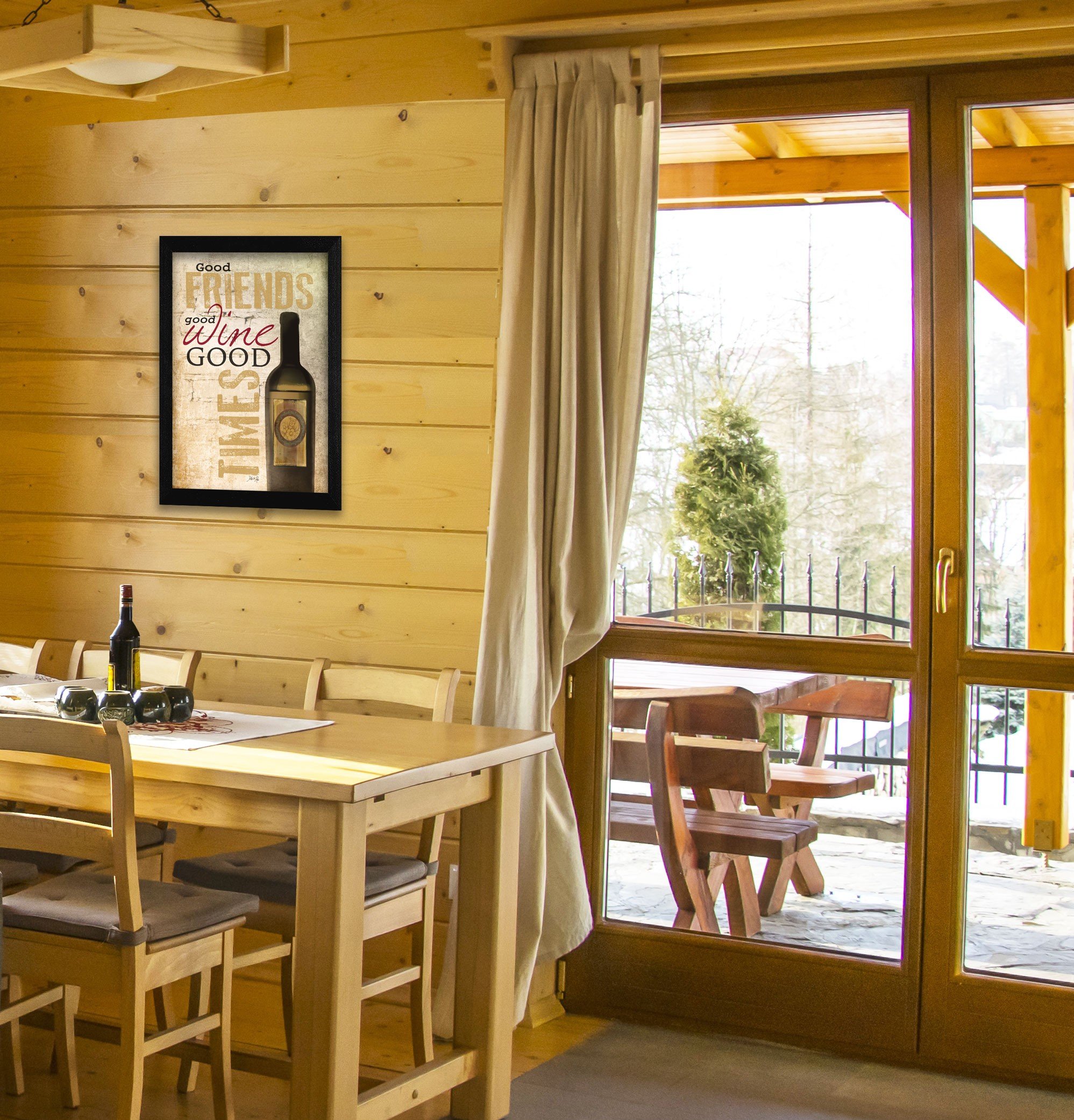 Bring some sizzle to your space with this eye-catching good wine 1 black framed print wall art. This print is a visual artistic expression that allows you to decorate your space in style. Reproduced for you on paper, this hanging decorative accent will be a trendy and fashionable way to dress your walls. Hang on your wall to add some up to date fashion and decoration. Utilize this opportunity to create a focal point in the room with this fabulous wall decor option. 20-inch H x 14-inch W x 1-inch D