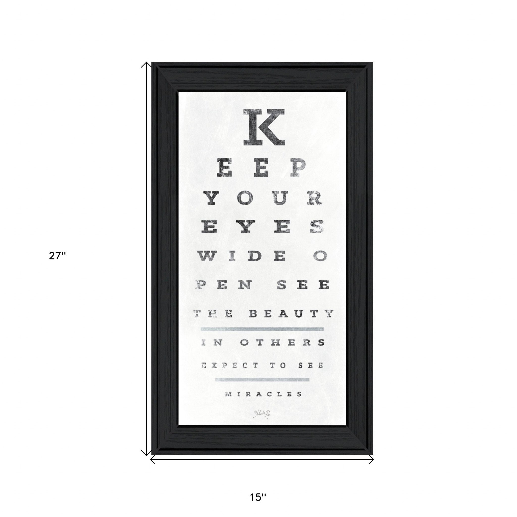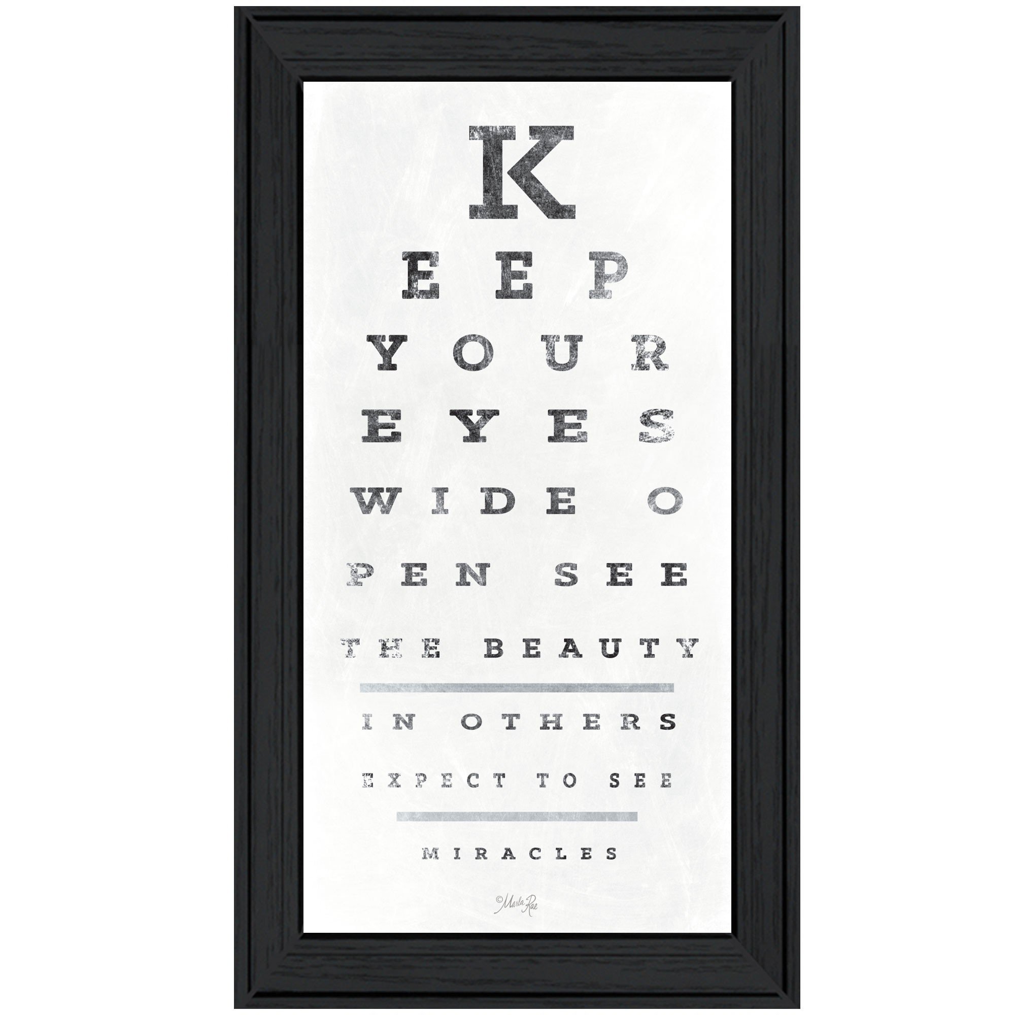 The eye chart ii 1 black framed print wall art is the perfect decorative accessory for your home. This print is a visual artistic expression that allows you to decorate your space in style. Reproduced for you on paper, this hanging decorative accent will be a trendy and fashionable way to dress your walls. Adding this hanging wall art to your space to make your room feel more finished and attractive. Utilize this opportunity to create a focal point in the room with this fabulous wall decor option. 27-inch H x 15-inch W x 1-inch D