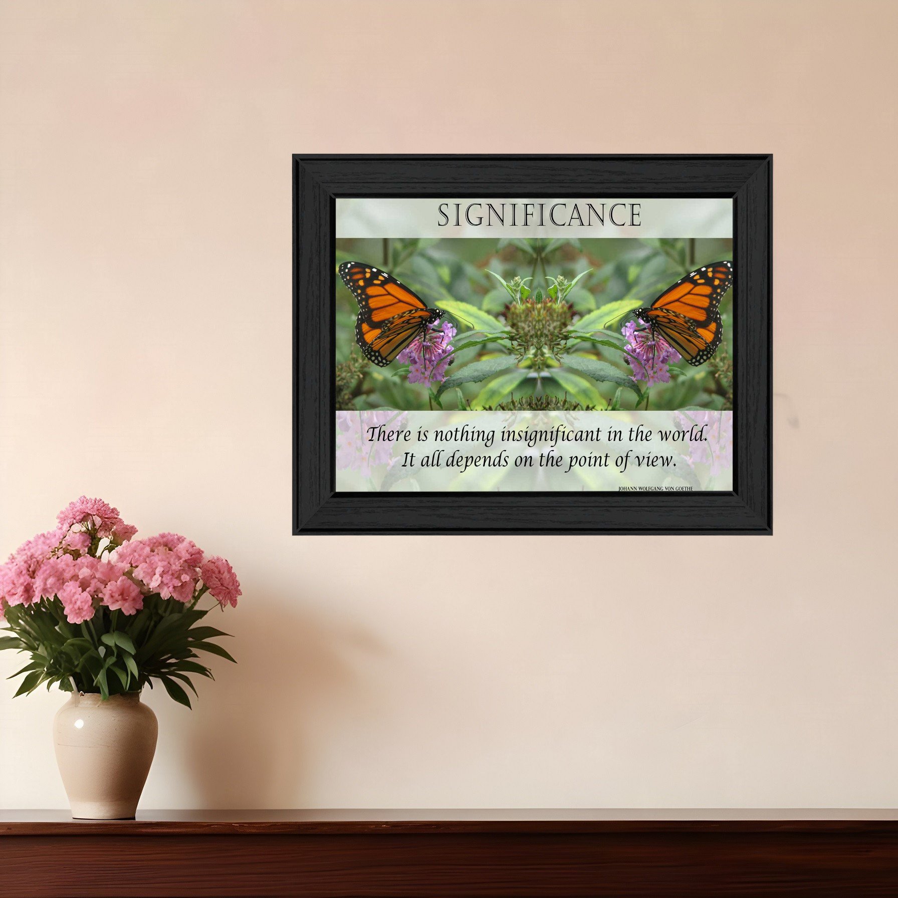 This significance 3 black framed print wall art will add a beautiful decorative accent to your decor. This butterfly inspired art will be a great addition to your space. This print is a visual artistic expression that allows you to decorate your space in style. Reproduced for you on paper, this hanging decorative accent will be a trendy and fashionable way to dress your walls. Hang on your wall to add some up to date fashion and decoration. Utilize this opportunity to create a focal point in the room with this fabulous wall decor option. 15-inch H x 19-inch W x 1.5-inch D