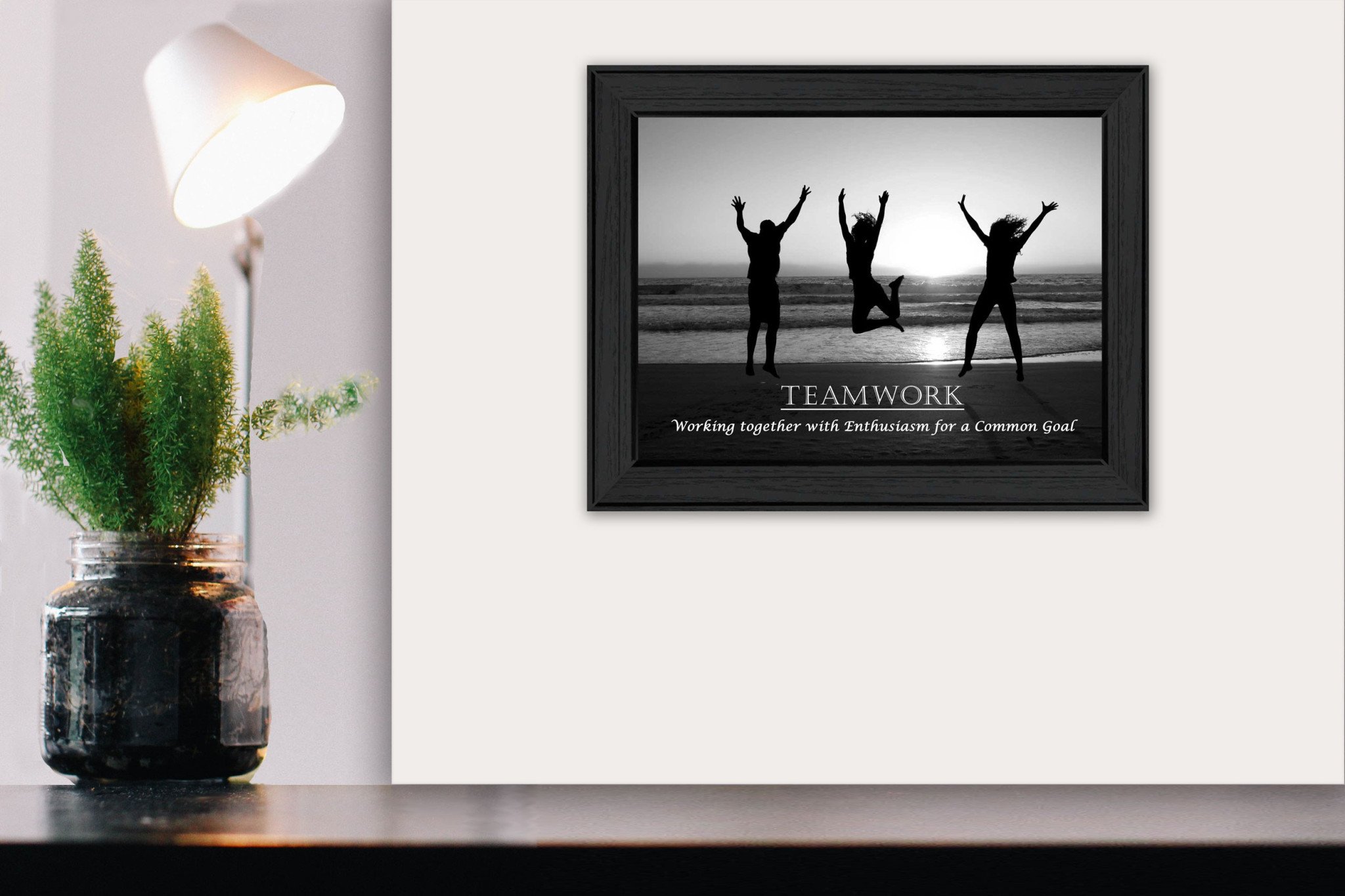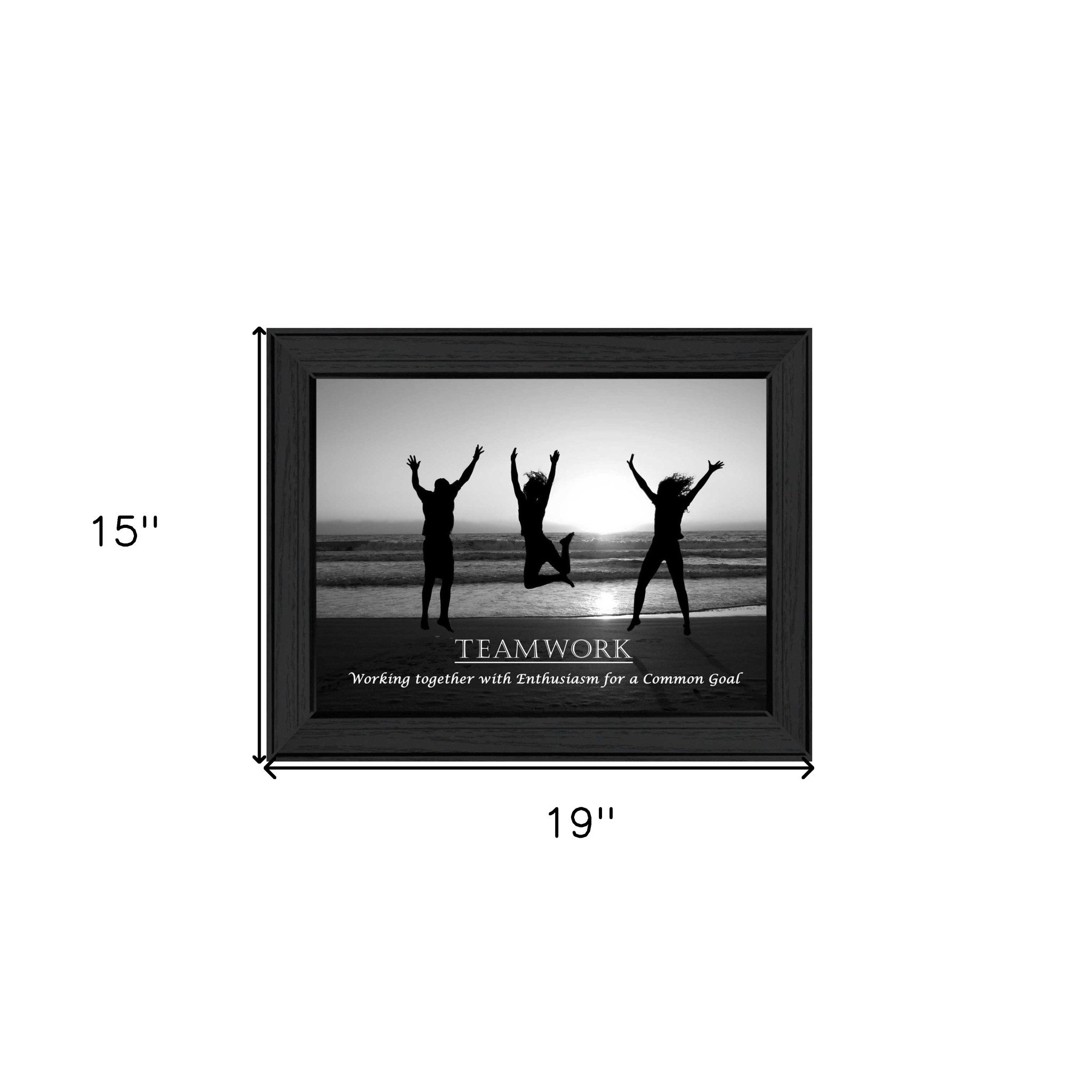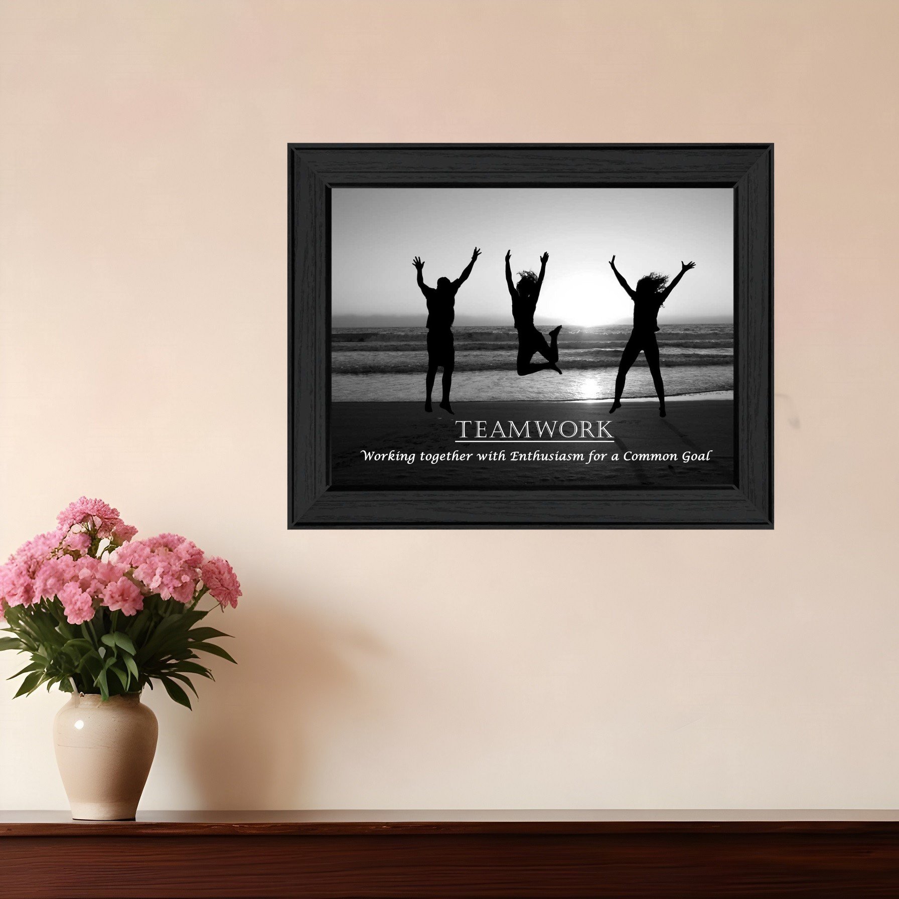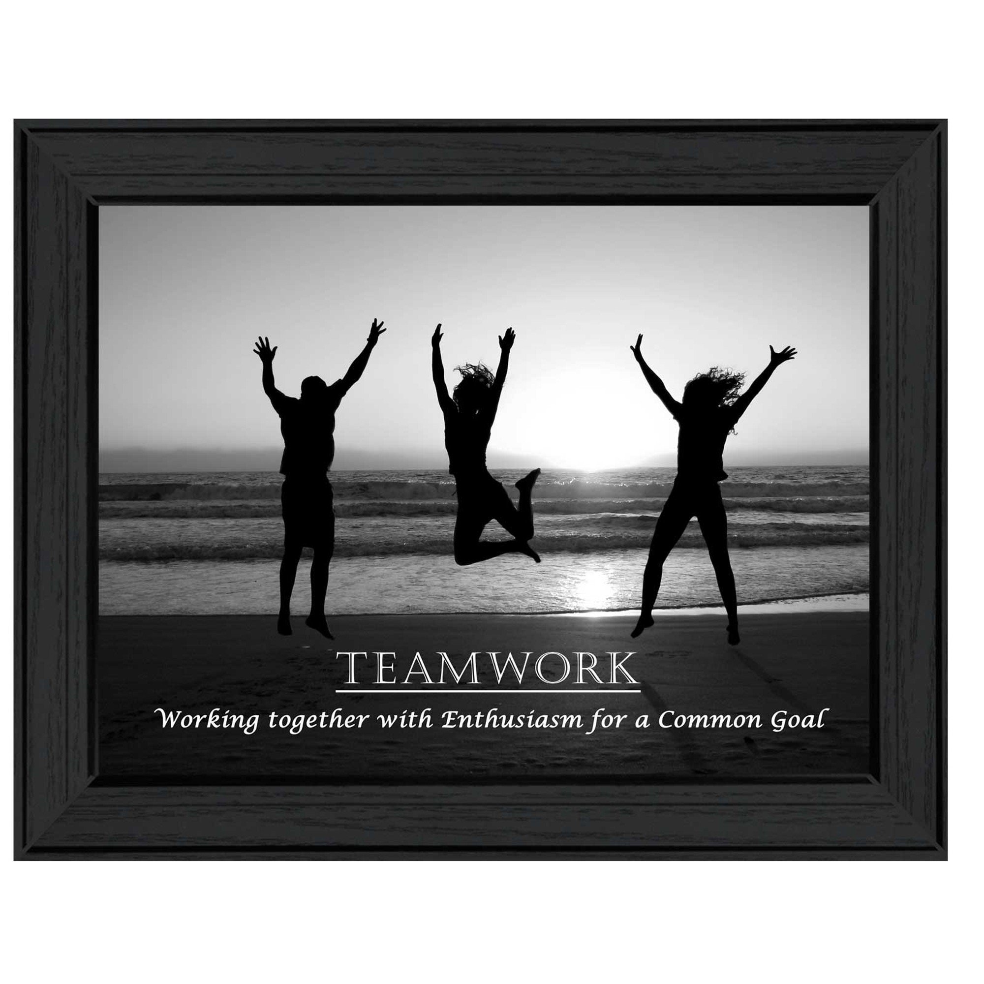 The teamwork 5 black framed print wall art is the perfect decorative accessory for your home. This print is a visual artistic expression that allows you to decorate your space in style. Reproduced for you on paper, this hanging decorative accent will be a trendy and fashionable way to dress your walls. Adding this hanging wall art to your space to make your room feel more finished and attractive. Instantly liven up your space with this art that brings color and dimension to your walls. 15-inch H x 19-inch W x 1.5-inch D
