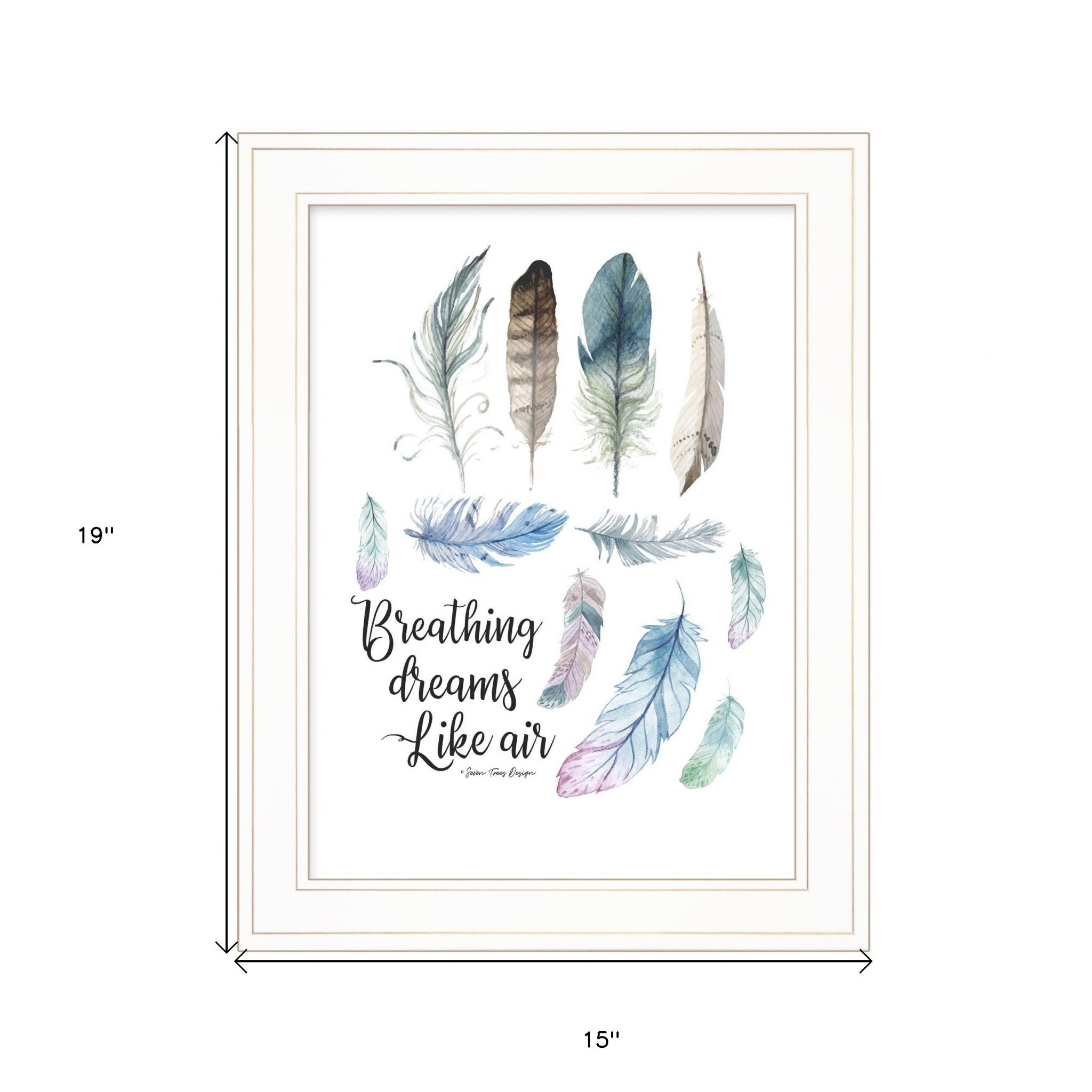 The breathing dreams like air 1 white framed print wall art is the perfect decorative accessory for your home. This print is a visual artistic expression that allows you to decorate your space in style. Reproduced for you on paper, this hanging decorative accent will be a trendy and fashionable way to dress your walls. Adding this hanging wall art to your space to make your room feel more finished and attractive. Instantly liven up your space with this art that brings color and dimension to your walls. 19-inch H x 15-inch W x 1-inch D